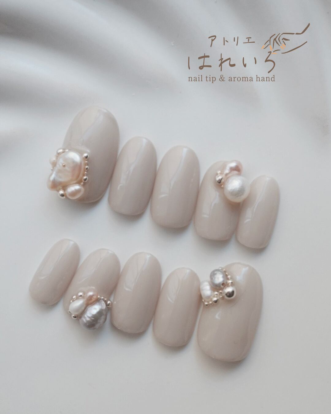 グレージュ ビジューネイル