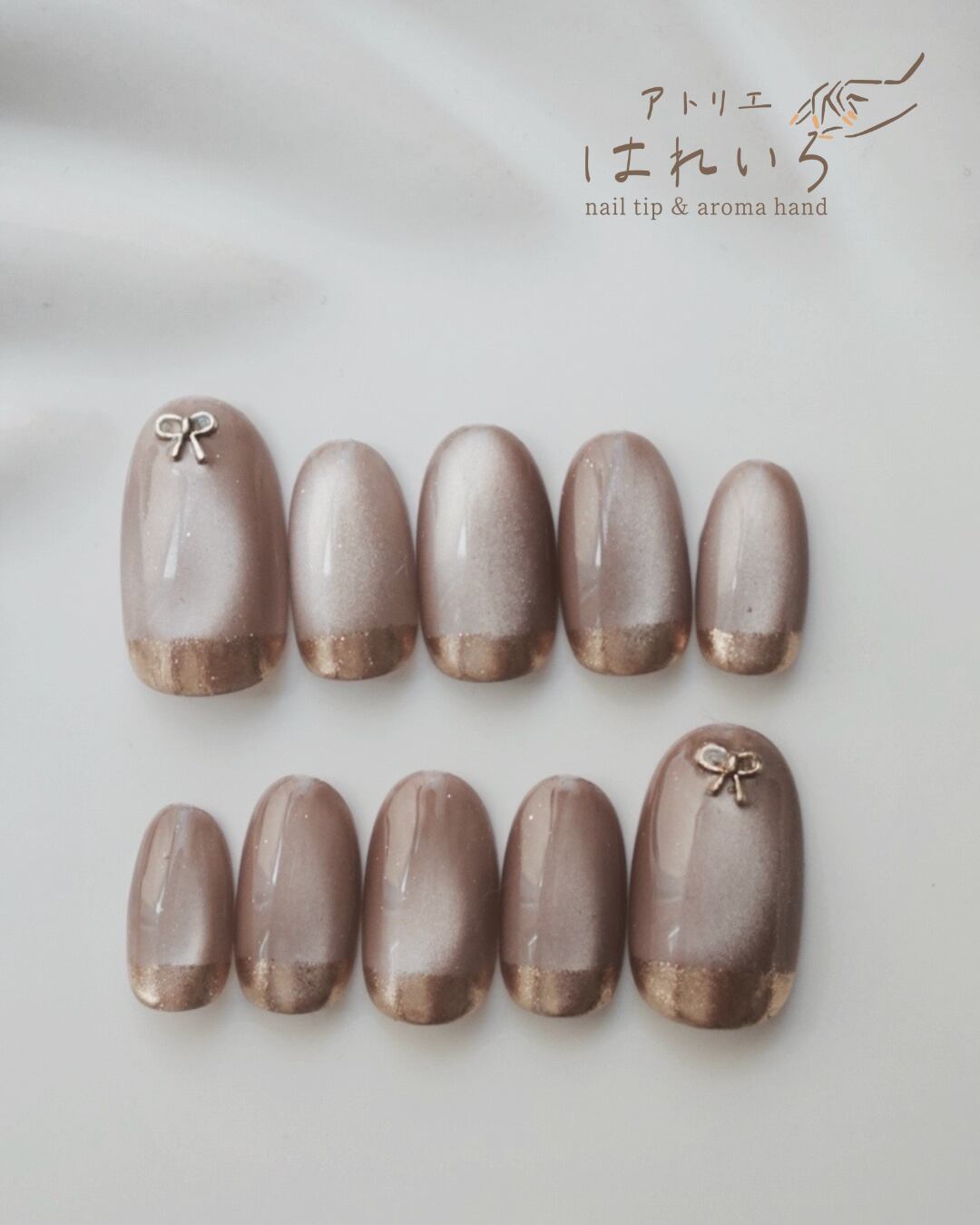 柔らかなピンクカラーが指先に温かみを与え、リボンポイントがアクセントになって、キュートな印象を与えます。