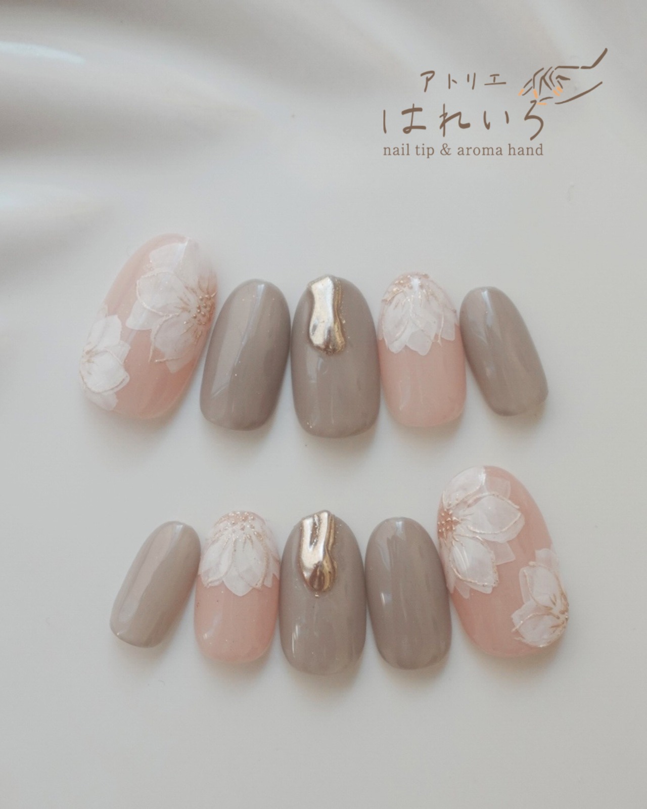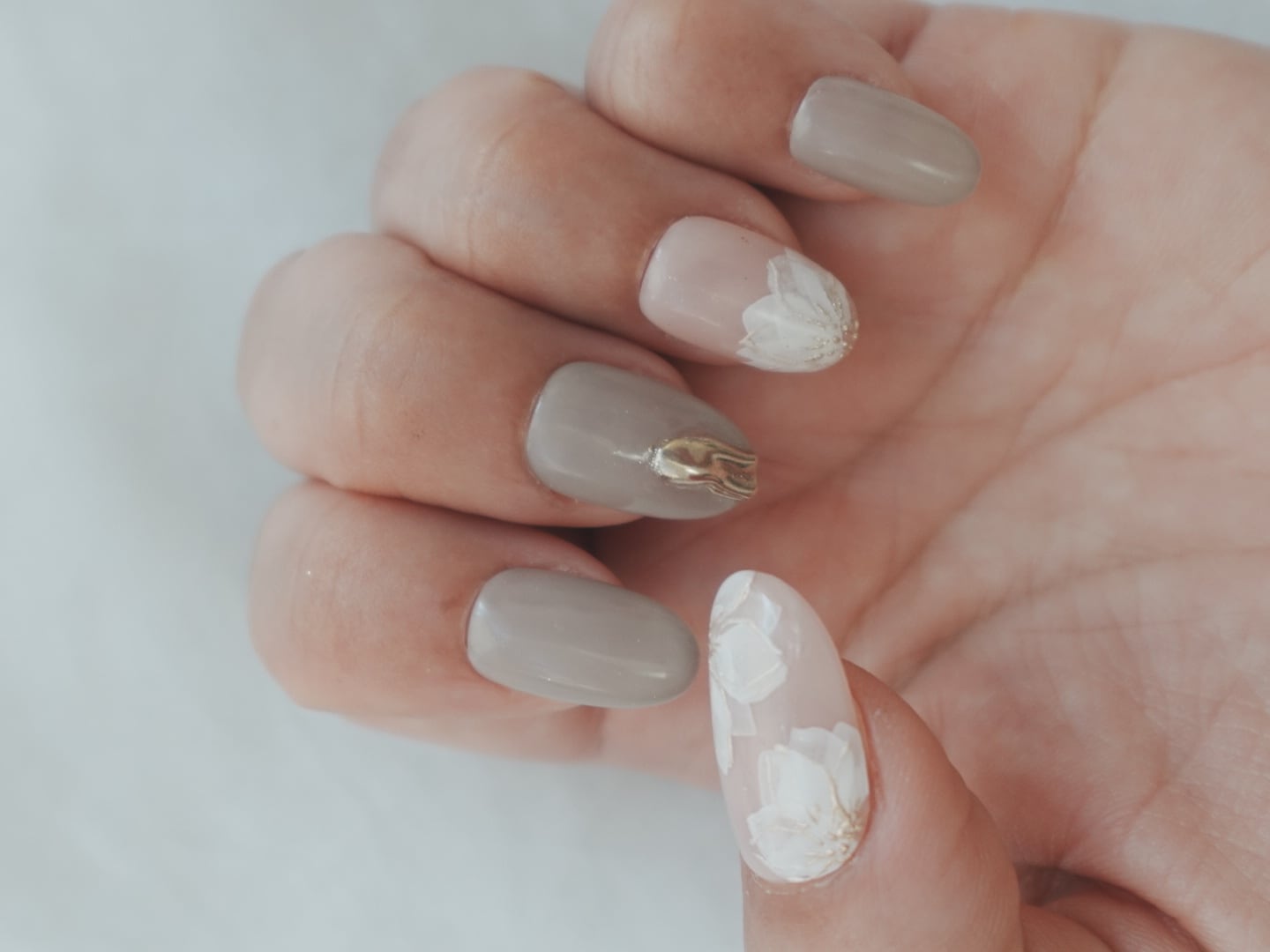 中指はグレージュ+ゴールドポイントでさりげない高級感