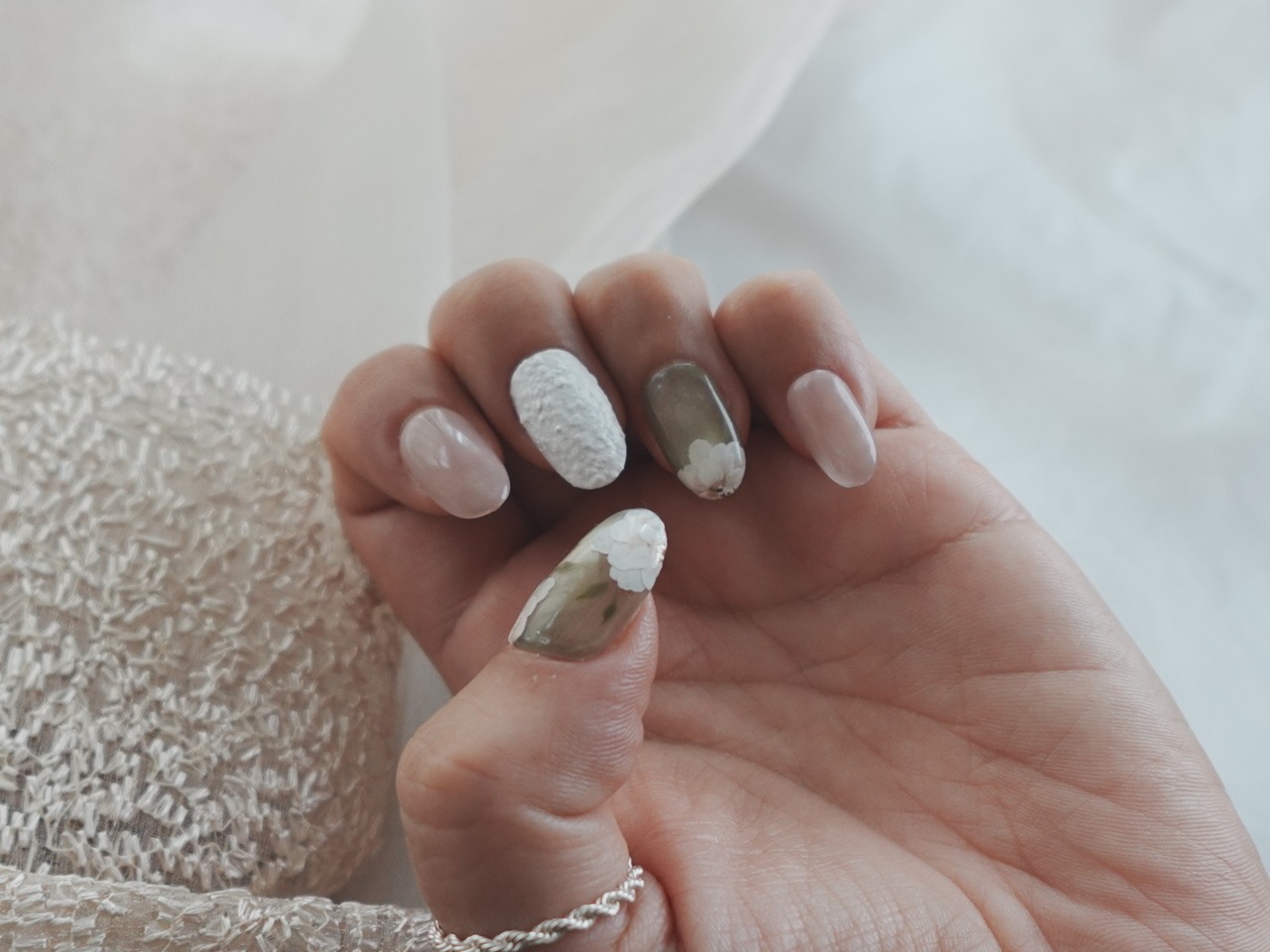 中指はざらっとしたホワイトで、